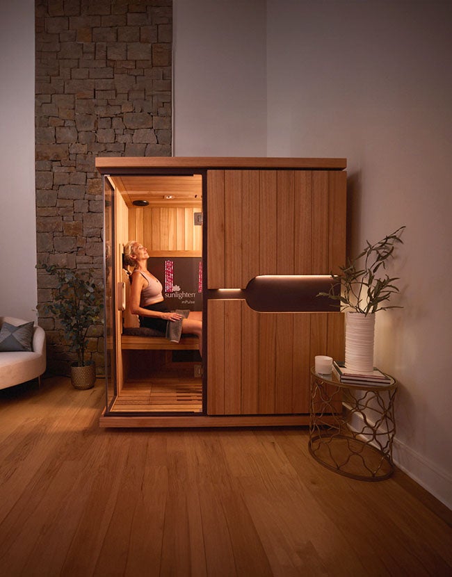 The Sunlighten mPulse Empower boasts a contemporary design that exudes luxury and sophistication. The exterior is crafted from sustainably sourced, eco-friendly wood, offering a natural and elegant look that complements any home decor. Its large glass front door and side panels create an open and inviting atmosphere while allowing for ample light. Inside, the sauna is spacious enough to comfortably accommodate two people, with ergonomic seating that enhances relaxation. The interior lighting, coupled with the sleek wooden finishes, adds to the sauna’s tranquil and rejuvenating ambiance, making each session a serene escape from daily stresses.